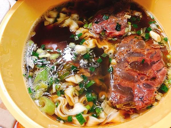 蔥花跟酸菜的量蠻多的,會有一點點自己在吃真的牛肉麵的感覺XD
