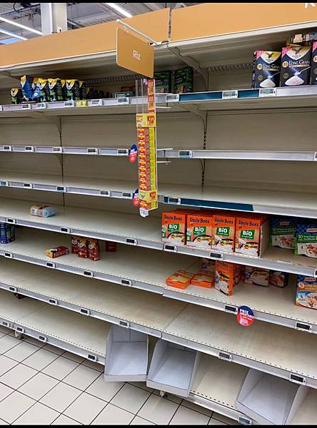 從照片中看的出來缺貨缺得最厲害的是義大利麵跟麵包