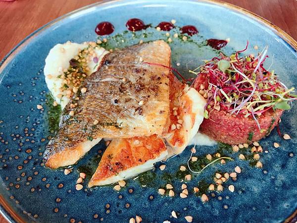 皇家雕魚,苜菜甜菜塔,芹菜泥 18.5歐元