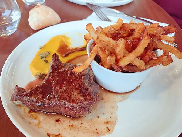 烤牛肉片,紅蘿蔔調料,店家自製薯條 18.5歐元