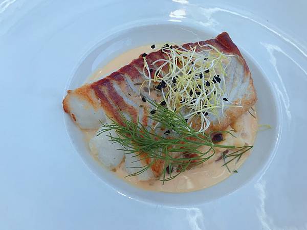 黑背鱈魚,米飯,貝殼醬 15.5歐元