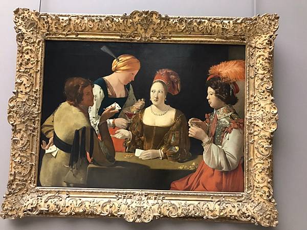 在作弊者和風塵女子的中間,站著一個手持酒杯的侍女。