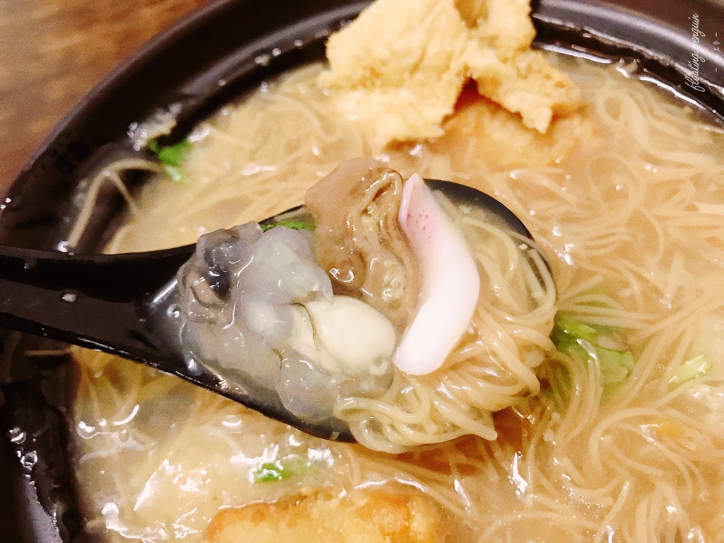 以蚵仔麵線為基底,配上透抽、大腸、肉羹、炸土魠魚、魚酥還有雞塊