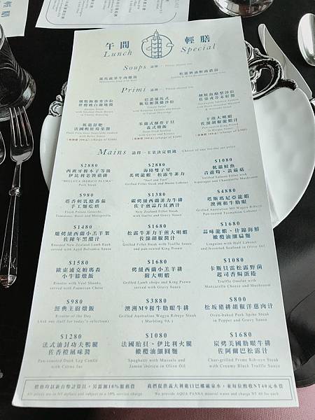 有湯品、前菜、主餐、飲料可選擇