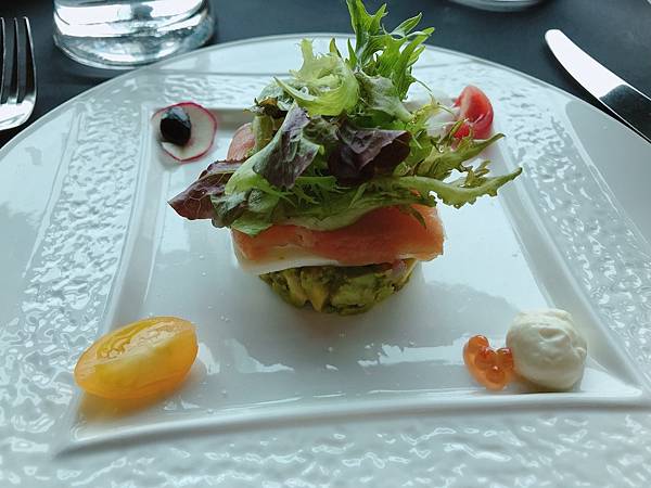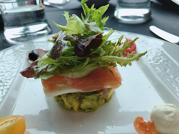 燻鮭魚酪梨沙拉佐第戎芥末籽醬