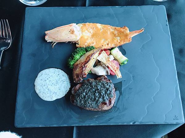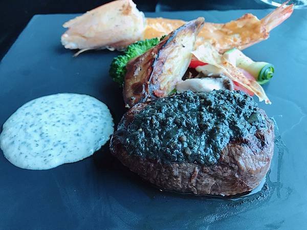 松露牛菲力干煎大明蝦佐綠胡椒醬汁 1680