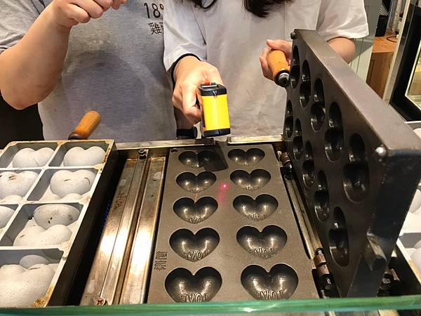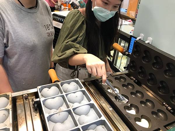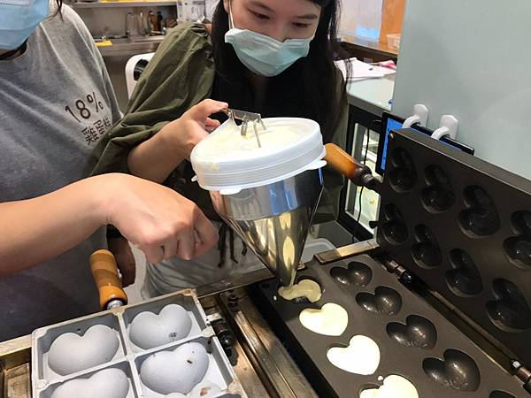 放完餡料之後,就是擠麵糊把它蓋住,做出圓滿的愛心形狀!!