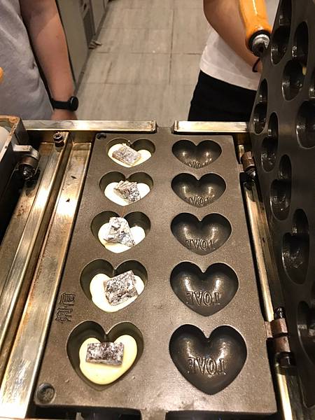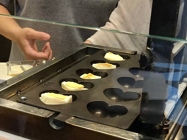 擠完第一次麵糊之後,就放上黑糖麻糬啦~