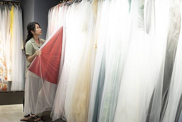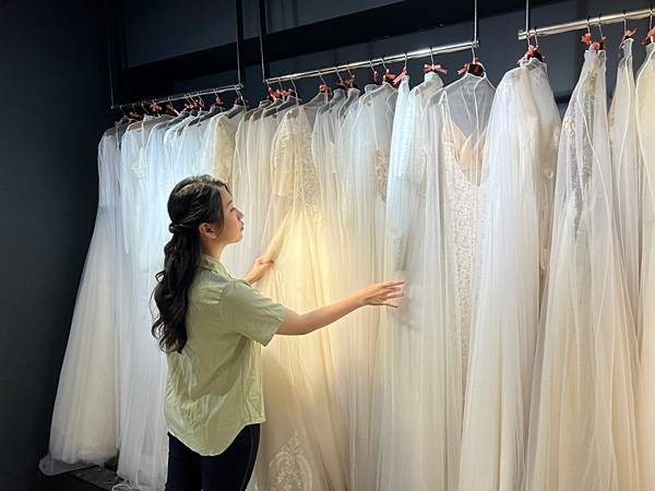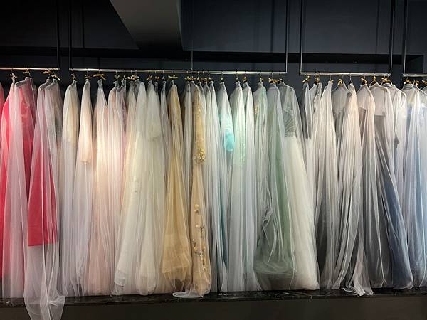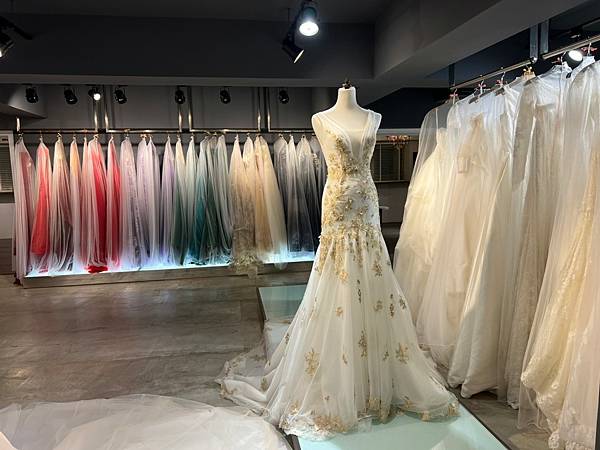 婚紗是老闆去歐洲、杜拜、韓國採買布料回來定做