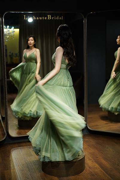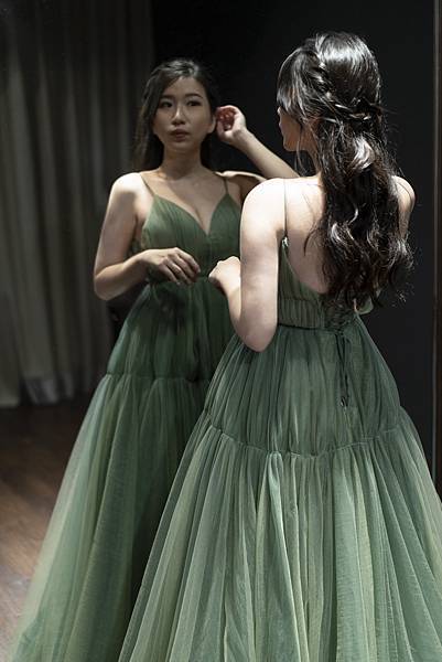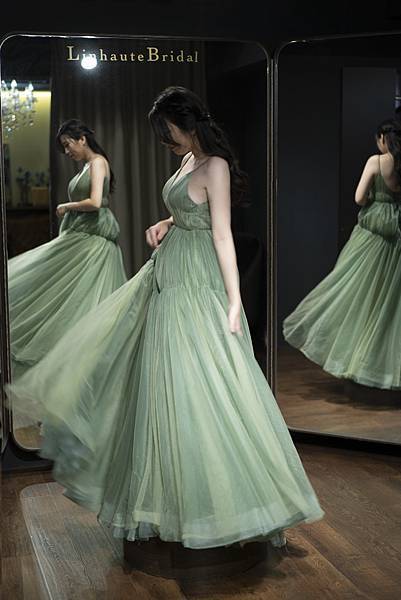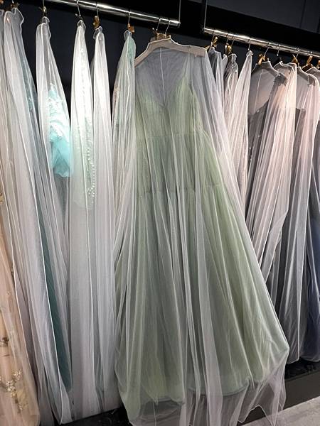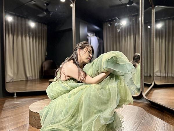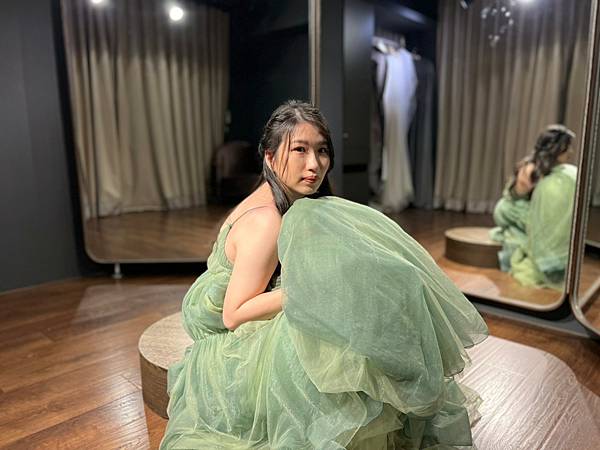 非常特別的綠,我也好少看到好看的綠色禮服,所以一眼相中!
