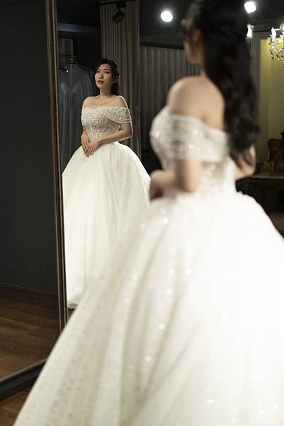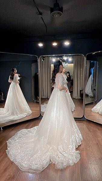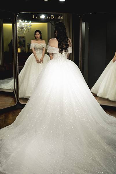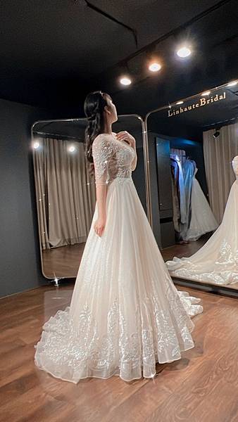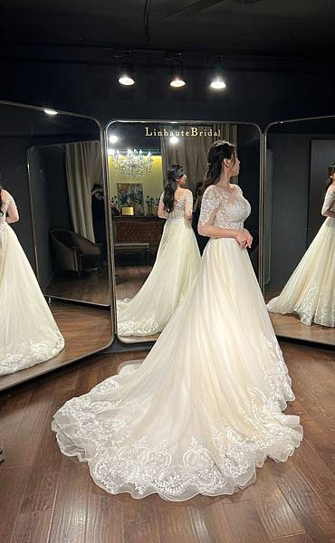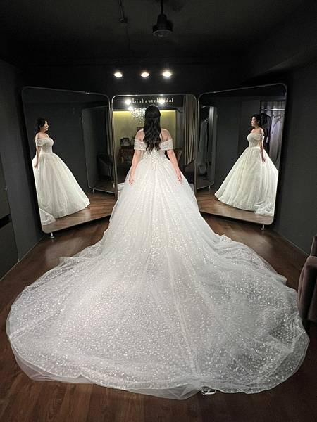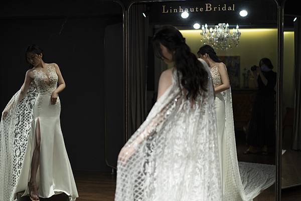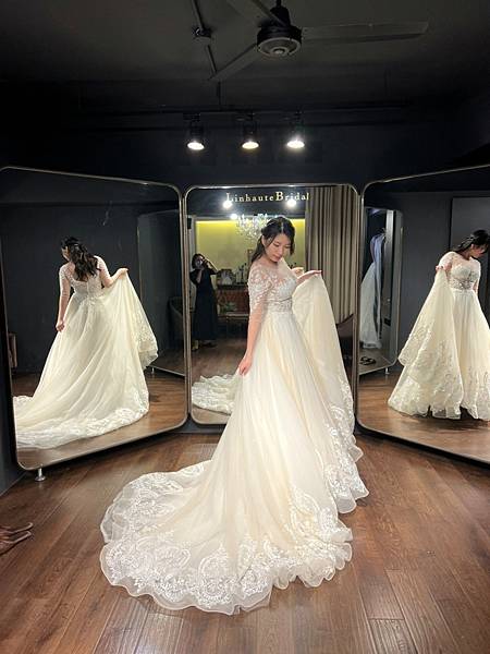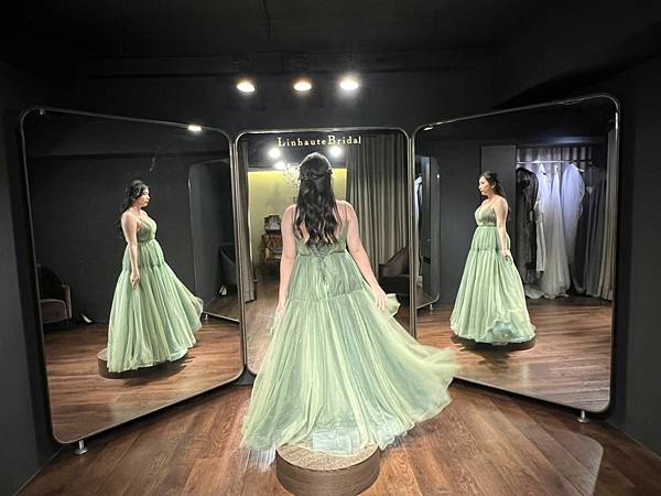三面鏡子更能全方位欣賞到禮服的每一個細節!