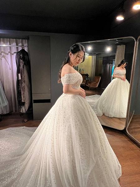 (之前陪家人去試穿了好多家,有一些很明顯就是舊禮服)