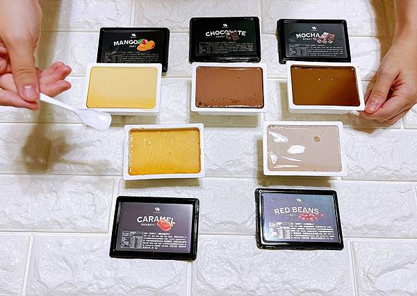 傳統焦糖、摩卡、芒果、巧克力、紅豆饌