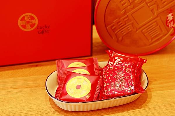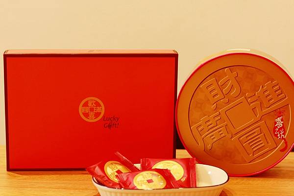 禮盒做成圓圓的錢幣造型