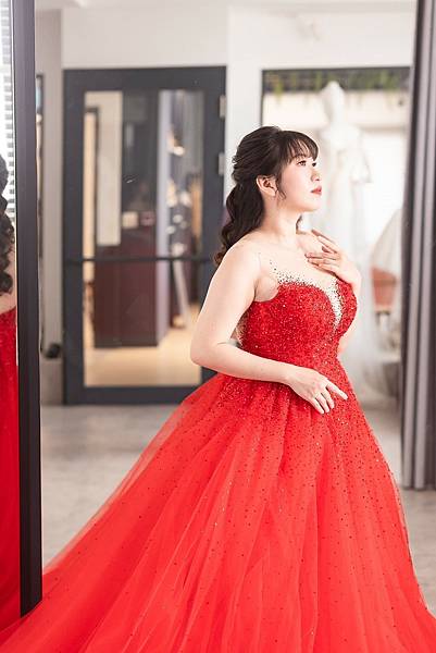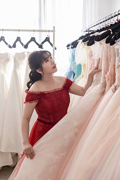 在挑禮服的過程中,我就說我喜歡比較特別的,還喜歡紅色!!