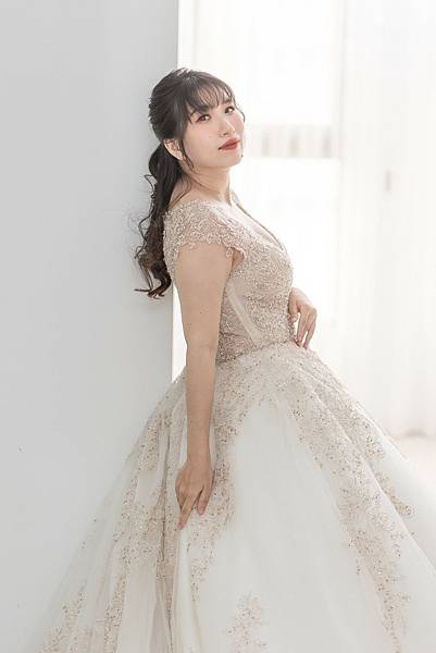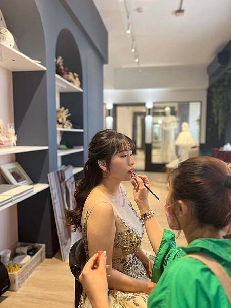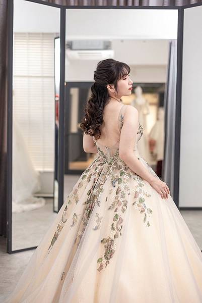 建議水水們來試穿禮服的時候可以化一點淡妝,更顯氣色