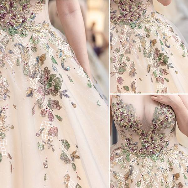而真正的手工禮服會在設計版型、材質、蕾絲及製作時有更精細的品質把關