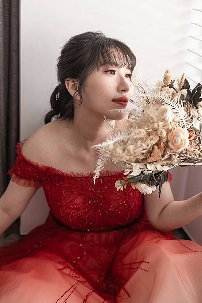 紅色代表著愛情的激情與深情,這些珠飾彷彿是愛情的訴說者,為整個造型增添了一份獨特的韻味