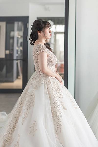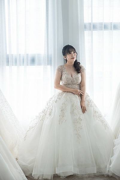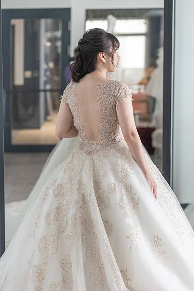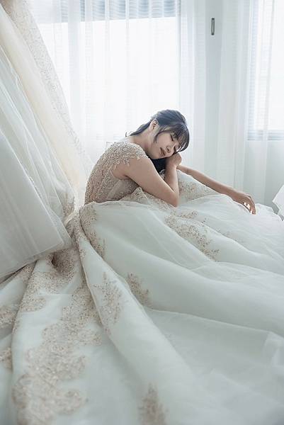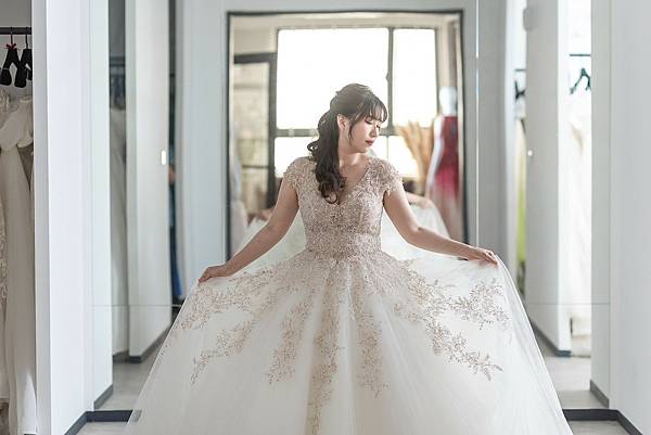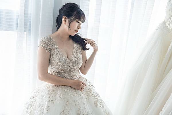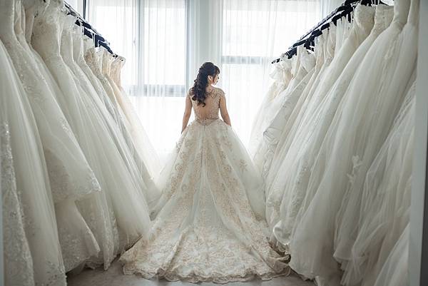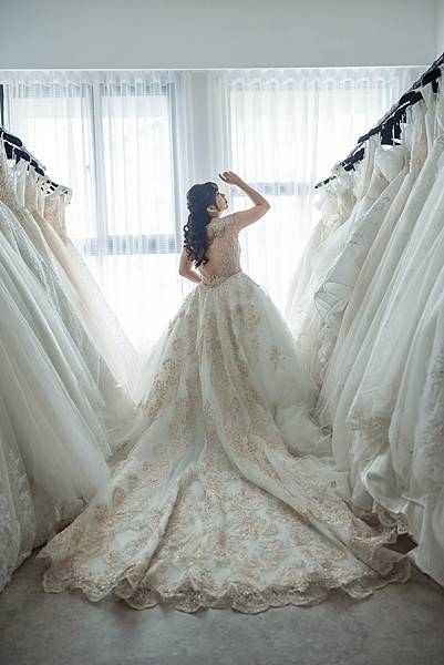 再交由專業資深的車縫師傅及手工珠飾設計師,仔細縫製完成的幸福嫁衣