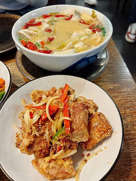 我們點了肥腸、酸菜魚、椒鹽排骨