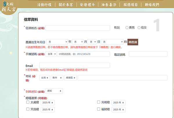 除了現場點燈,也可以線上填寫信眾資料,廟方會幫忙點上光明燈