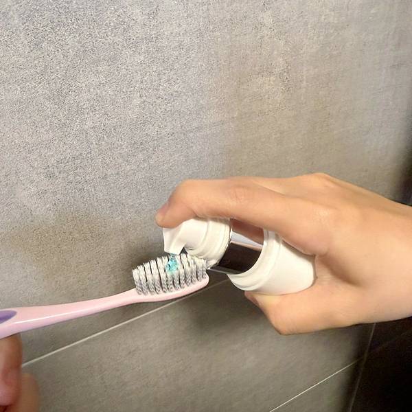 而牙膏瓶身有別於以前用的長條擠壓式的傳統牙膏